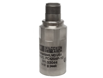 威爾康森4-20mA回路供電振動傳感器PC420AP-10型,頂部出口,105°C,4-20 mA,10 g(98 m / sec2)滿量程測量范圍,滿量程±5%容差,與峰值加速度成正比。