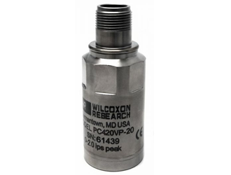 威爾康森4-20mA回路供電振動傳感器PC420VP-20型,頂部出口,105°C,4-20 mA,2.0 ips(50.8 mm / sec)滿量程測量范圍,滿量程±5%容差,與峰值速度成比例。