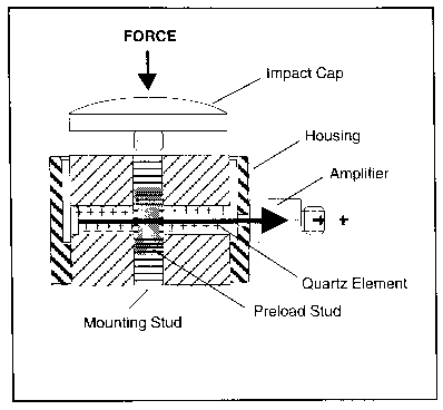 圖1顯示了典型石英力傳感器的橫截面。這種特殊的傳感器是通用208系列壓縮/張力模型,內置電子元件。