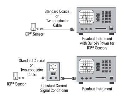 ICP®是一個用內置微電子放大器***識別PCB壓電傳感器的術語。(ICP®是PCB Group,Inc。的注冊商標)由恒流信號調理器供電,結果是易于操作,低阻抗的雙線系統,如圖5所示。