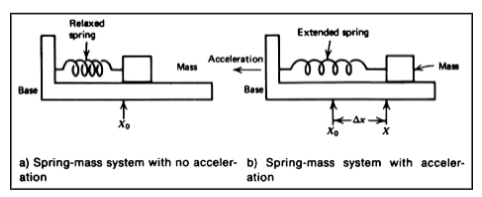 加速度計的設(shè)計基于物理現(xiàn)象的應(yīng)用。在航空領(lǐng)域,加速度計基于旋轉(zhuǎn)質(zhì)量的特性。然而,在工業(yè)界,這種設(shè)計是基于牛頓質(zhì)量加速定律和胡克彈簧作用定律的結(jié)合。這是應(yīng)用于加速度計制作的***常見設(shè)計,因此,在本維基頁面中,我將重點介紹基于牛頓定律和胡克定律的組合加速度計的工作原理。圖1顯示了簡化的彈簧質(zhì)量系統(tǒng)。在圖1a中,質(zhì)量m的質(zhì)量在平衡位置x0處附接到彈簧,該平衡位置x0附接到基部。質(zhì)量塊可以在底座上自由滑動。假設(shè)基礎(chǔ)摩擦可以忽略不計。圖1b顯示了質(zhì)量通過Δx= x - x0的位移向右移動。由于質(zhì)量減慢,加速度矢量的方向在左側(cè)。在這種情況下,根據(jù)牛頓第二定律和胡克定律,質(zhì)量受制于力量。